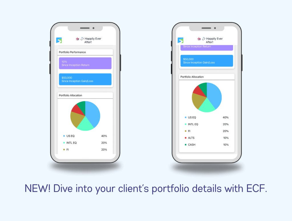 ECF launched with a mobile app from day one, because we know it’s vital to have access to your client’s financial information — even when you’re on the move. Many advisors still rely on antiquated financial planning tools that keep you tethered to your desktop and can hinder a financial advisor’s high-touch business.