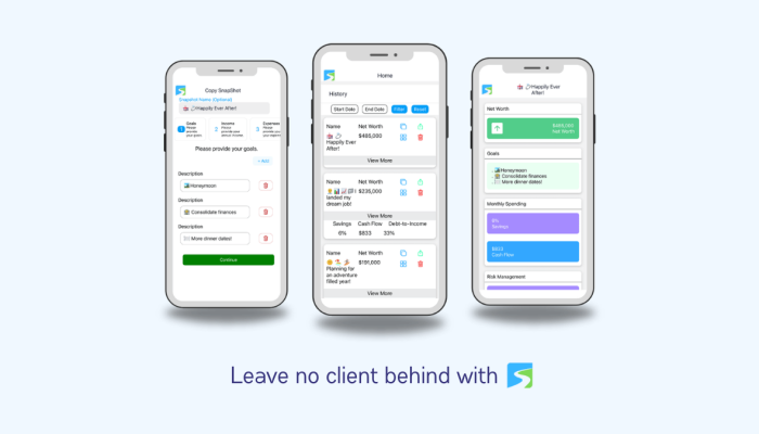 Once you’ve collected the latest data from your client using ECF Discovery, you can share your client’s ECF Snapshot via a shareable link from your phone. Send it to clients, and they’re instantly taken to a financial overview on their mobile device or desktop computer.