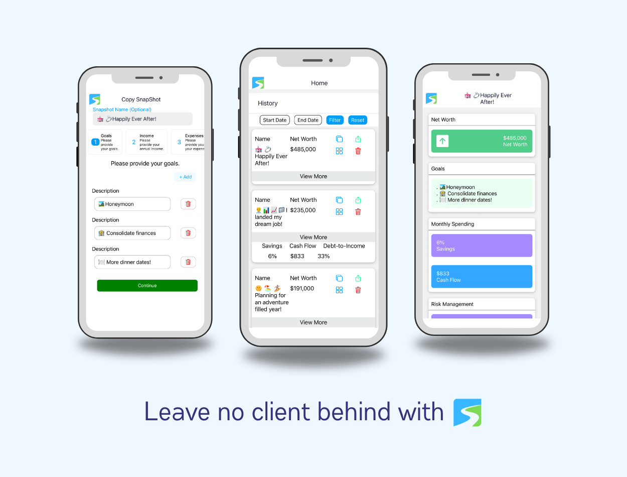 Once you’ve collected the latest data from your client using ECF Discovery, you can share your client’s ECF Snapshot via a shareable link from your phone. Send it to clients, and they’re instantly taken to a financial overview on their mobile device or desktop computer.